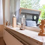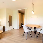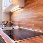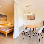 アパートの台所の便利さを楽しみ、自家製の食事を用意できます。 Ferienwohnung Sunrise 54° - Timmendorfer Strandすぐ近くのところにTimmendorf ZOBバス停があります。